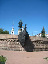 Переезжаем через Волгу на правый берег. Останавливаемся на Советской площади возле памятника князю Михаилу Ярославовичу Тверскому. Пишут, что при нем Тверь стала Тверь стала столицей самого могущественного княжества в Северо-Восточной Руси.
