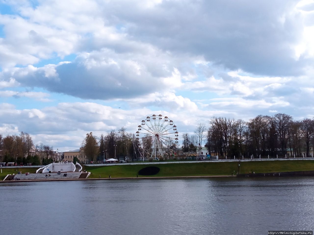 Со смотровой площадки на берегу Волги открывается вид на Новый Волжский мост, Успенский собор, руины Речного вокзала, устье реки Тверцы, впадающую в Волгу, Свято-Екатерининский женский монастырь.