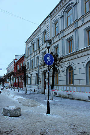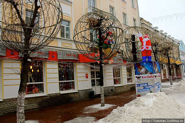Во-первых, я понимаю, что в России наступила зима и по законам природы вокруг должно быть много снега, но почему его так много на центральной пешеходной улице? Да еще снег со льдом, приятный новогодний коктейль. Снега и льда в Тверь очень много, улицы в центре не чистят вообще.