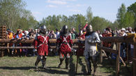 красиво конечно, но уровень фехтования на подобных зрелищах на двоечку с минусом. Дешевле массовку нанять, чем профессионалов по историческим боям. Глебово-Городище годовщина битвы на Воже здесь вот тоже мужики ослопами махали — лучше бы просто морды били)
