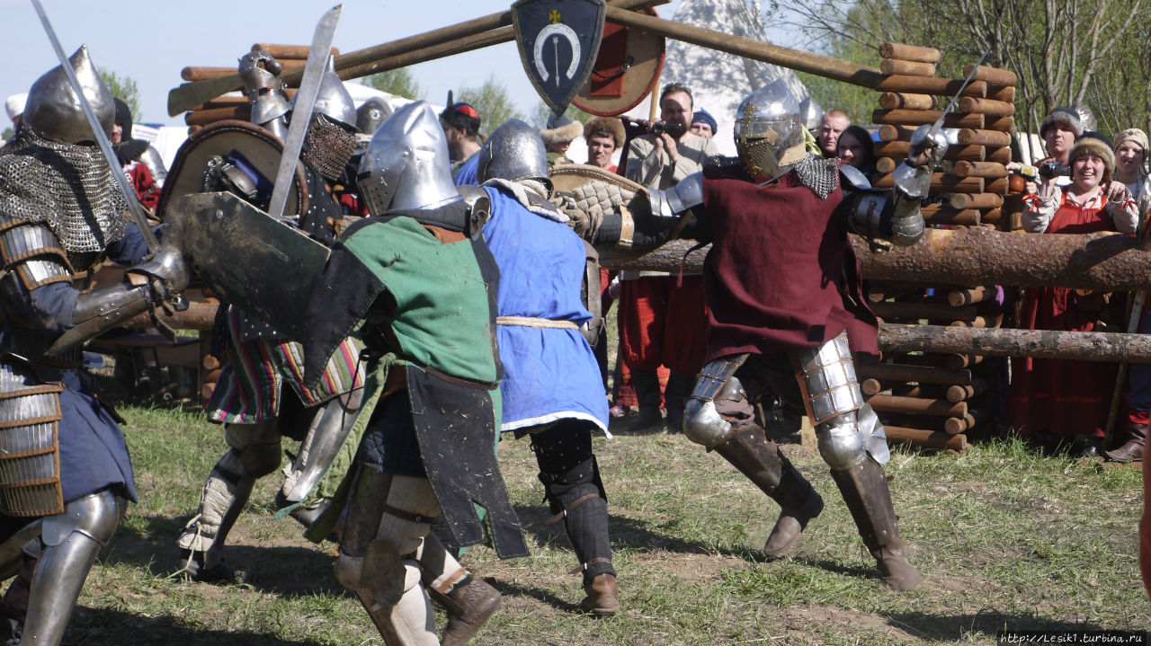 И вот одиночные бои закончились, и после небольшого перерыва подошло время для одного из самых зрелищных действий — бугурта (напоминаю — ударение на второе У :)). О правилах проведения бугуртных боев, а проще говоря «стенка на стенку» — в той же заметке об Изборске.