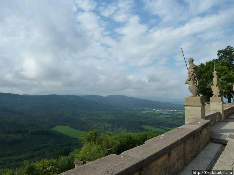 Замок Гогенцоллерн (Burg Hohenzollern) красив. Построен на вершине горы Цоллерн на высоте 855 метров. Ещё его называют "замок в облаках". Я бы в нем жил, но он уже занят потомками швабской королевской ветви семьи Гогенцоллеров.