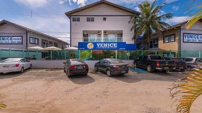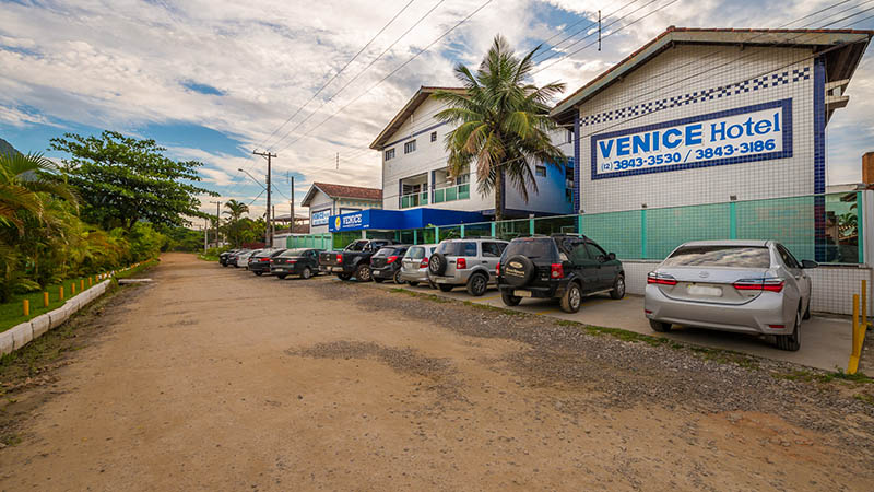 Hotel Maranduba и его соседи, а в нескольких сотнях метров севернее, ближе к середине залива. Эту прикрытую небольшим островком часть пляжа Марандуба уже правильнее называть пляжем Сапэ, но годятся оба названия. Пляжны посёлок между шоссе и песком там пошире — целых две параллельных улицы, и отель стоит на ближней к шоссе, но на почтительнос отдалении от него. И чтоба доехать ло этой парковки ещё нужно сделать кое-какие манёвры(фото с сайта отеля)