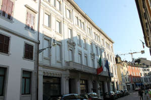 Следующая цель, которую мы себе поставили была еще одна из самых старых церквей города — церковь di San Francesco. Путь к ней лежал по улице Paolo Canciani мимо площади 20 Сентября. ( Piazza 20 Settembre) . Упоминул я об этой площади недаром. На ней стоит задержаться и посмотреть на очередные городские дворцы.