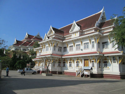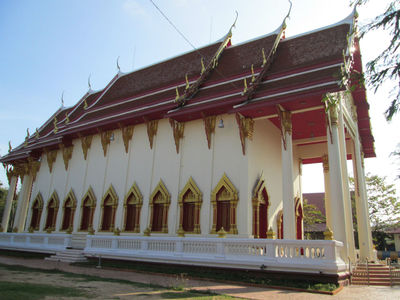 В любом тайском городе есть ваты (монастыри), некоторые из них заслуживают внимания. В западной части города Удон-Тхани, там где пруд, музей и госпиталь я обнаружил ват Фотисомфон. Его главная достопримечатальность — музей, о нем отдельно. Сам монастырь приличных размеров, имеет несколько входов, на территории могут гулять злобные собаки. Никакой справочной информации на английском и , тем более на русском (нашего человека в этом городе не замечено) я не нашел.