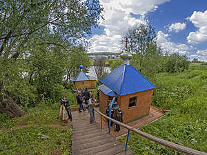 Сам источник оказался огражден комплексом деревянных сооружений с родником и домиком с купелью. Некоторые из участников не отказали себе в возможности получить немного счастья и здоровья, окунувшись в святые воды.