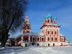 Историческая справка: церковь построена в 1692 году на месте гибели царевича Дмитрия взамен деревянной часовни. Расписан уже в 18 веке картинами, подробно изображающими смерть царевича и расправу толпы над убийцами. Не действует, является музеем.