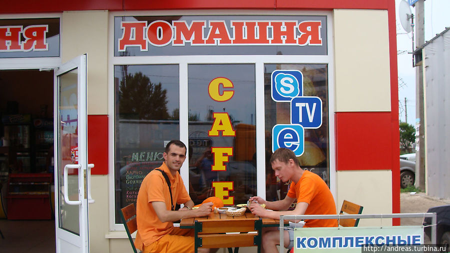 В городе с интересным названием Изюм мы обнаружили кафе с ещё более интересным названием "Автостоп". Конечно же, мы сразу побежали фотографироваться на его фоне и, естественно, пообедать. Кстати, недорогой комплексный обед, который стоит 20 гривен, оказался вкусным и сытным.