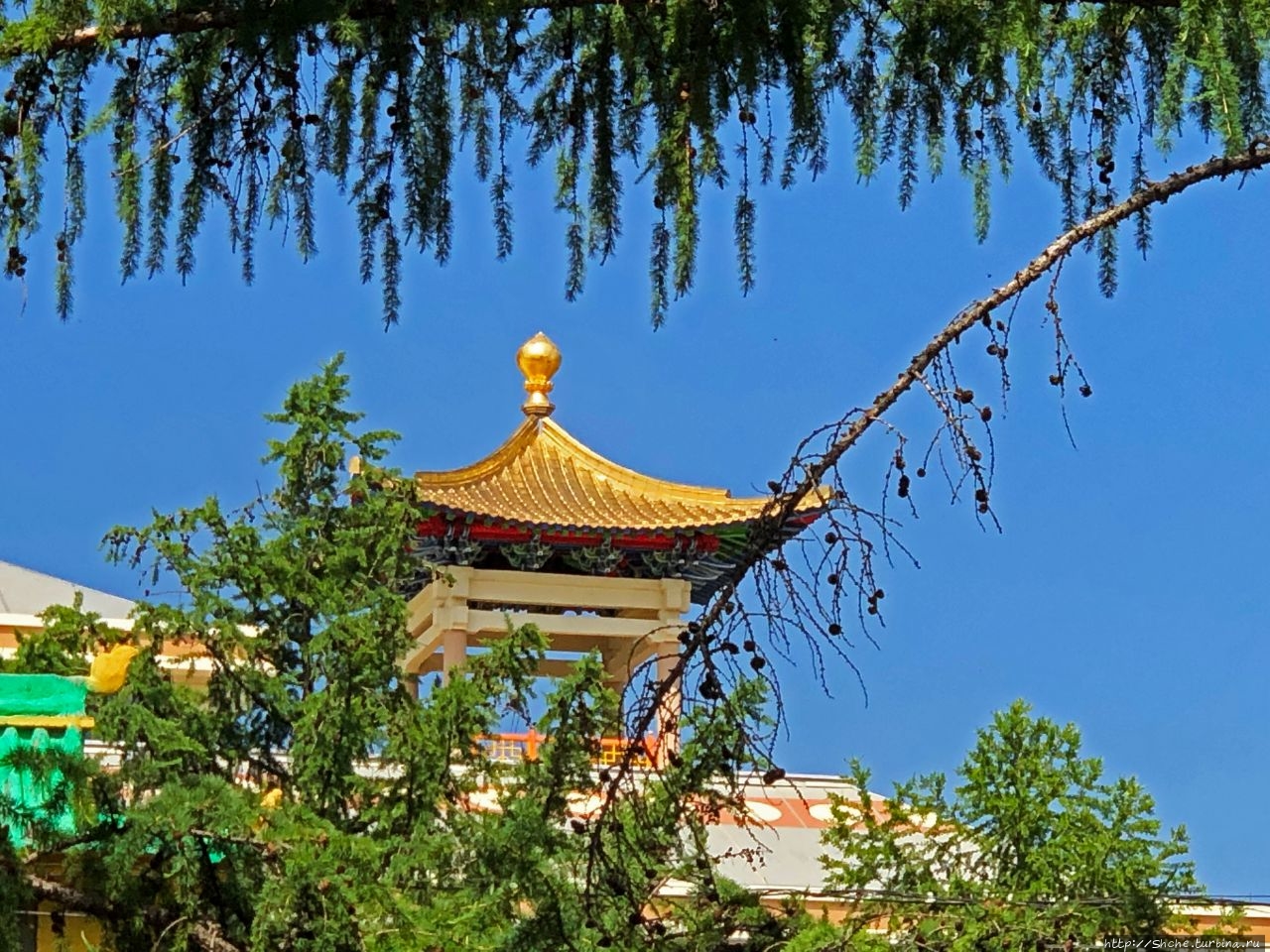 ...из-за которого виднелись характерные для буддистской архитектуры крыши храмов.