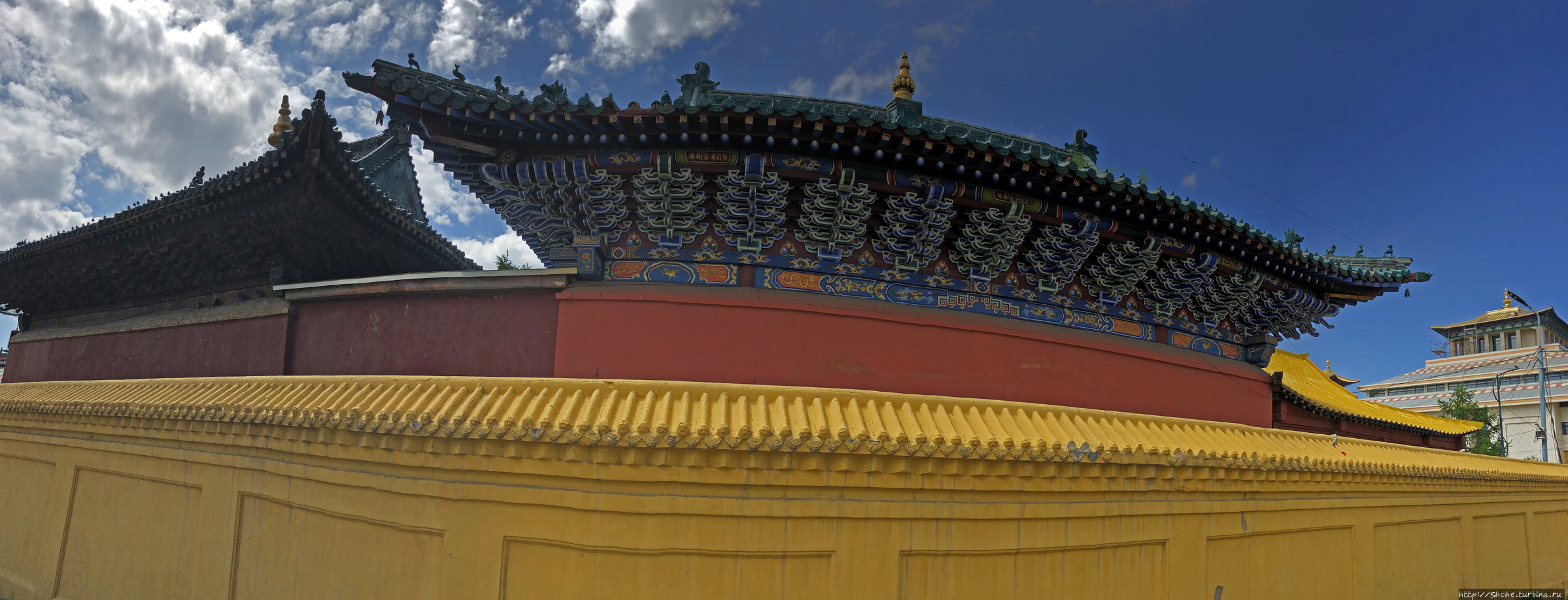 Но, как ни сокращай программу, посещение крупнейшего буддистского монастырского комплекса "выкинуть" никак нельзя, и вот, даже не позавтракав, только прилетевшая из Москвы группа заехала за мной в отель (я прилетел на 6 часов раньше и даже успел немного поспать) и через несколько минут мы припарковались возле длинного забора,