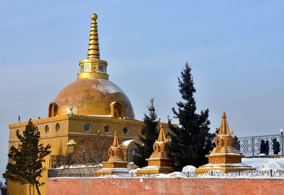 Недавно в дацане были построены две большие Золотые ступы Примирения.