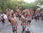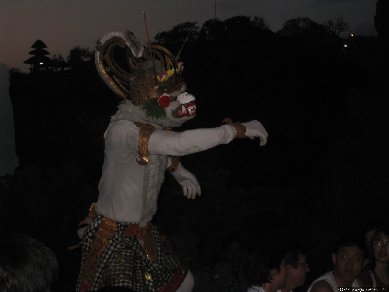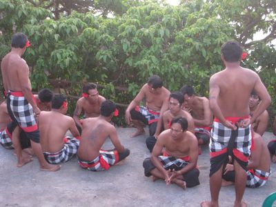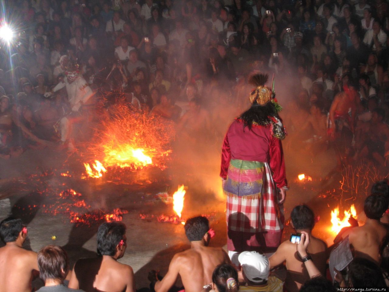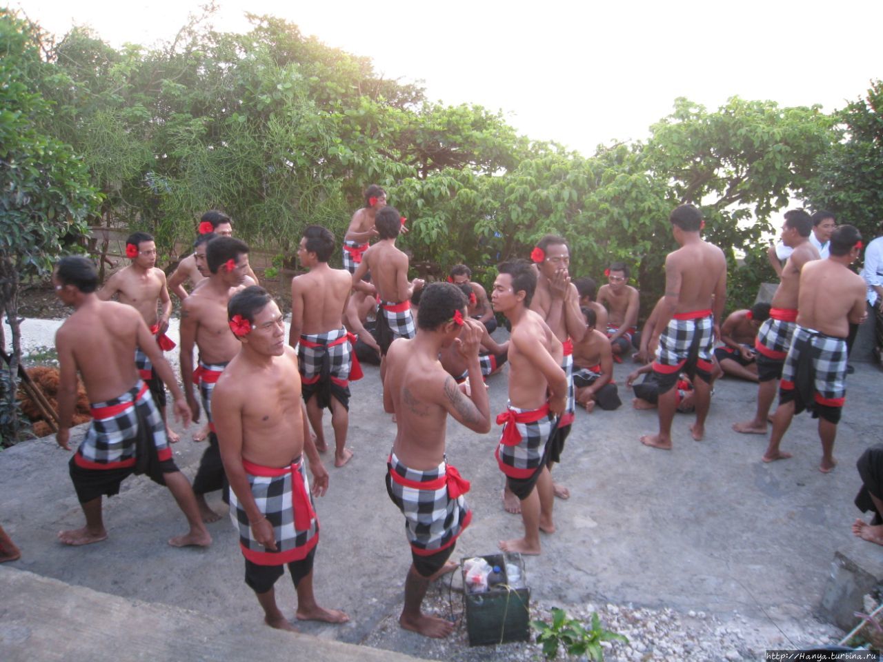 Потихоньку мы включаемся в сюжетную линию захватывающего танца и с удивлением отмечаем, что собственно, музыки-то и нет, участники оркестра извлекают звуки не из инструментов, а из собственных ртов. Здорово! Изысканные танцевальные движения в лучах заходящего солнца буквально завораживают, ощущаешь, как танцор входит в состояние транса. В отличие от танца Баронг, здесь не используются маски, и несмотря на то, что танец искусственно создан, а не рожден традициями, сегодня он стал иконой художественных традиций танца на Бали.