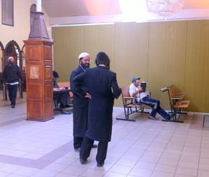 В этой комнате сейчас свободно и были только несколько человек, которые исступленно, и ни на кого не обращая внимания, громко читали цитаты из книг на иврите и отбивали, едва не разбивая лбы об стену, поклоны. Я представляю, что тут будет твориться 24-26 сентября! Вавилон!