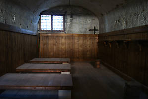 Камеры «Старых тюрем» – настоящие каменные мешки, в одной из которых несколько месяцев провел Джордано Бруно. Часть камер, находящихся непосредственно под крышей дворца назывались Пьомби (piombi — свинец), поскольку крыша помещений была покрыта свинцовыми пластинками, что делало пребывание заключенных невыносимым из-за нагревания металла от жары в летний период. Тюремные камеры, расположенные на первом этаже, назывались Поцци (pozzi — колодец), находились на уровне Дворцового канала и во время дождя их заливало водой. Обычными были жалобы на содержание больных заключенных вместе со здоровыми, скученность и неоправданные проволочки с судом.