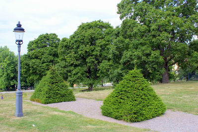 Стриженные ели — украшение спуска к Ботаническому саду.