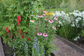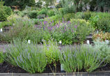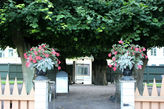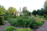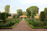 Сад разделён на зоны. В одном из боскетов из стриженной ели растут многолетние растения, в другом однолетние.