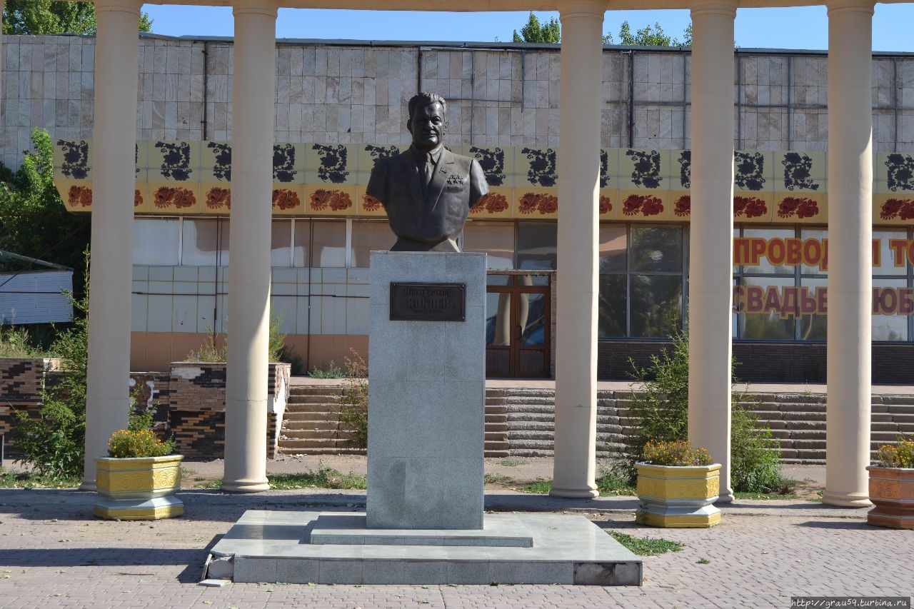 Бюст первому секретарю обкома партии у школы.19 сентября 2015 года в Уральске появился памятник Динмухамеду Ахмедовичу Кунаеву (1912 — 1993), одному из долгожителей правящей элиты советского Казахстана.