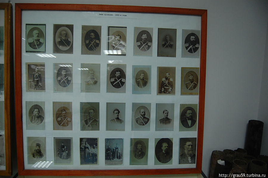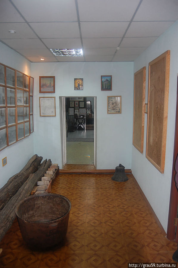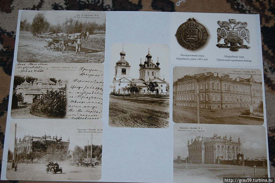 находятся различные старые жетоны . и старые фотографии Уральска ,часть из них выпущена на небольших открытках . .Не часто можно увидеть кирпичи с инициалами , тем более 1878 года выпуска.Здесь же висит портрет Николая Федорович а Савичева (1820-1885) – известного уральского писателя, историка и этнографа . Оставил в наследство потомкам бесценные рассказы о жизни и быте казаков и казахов.