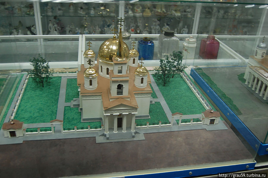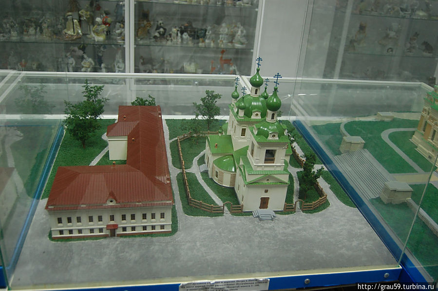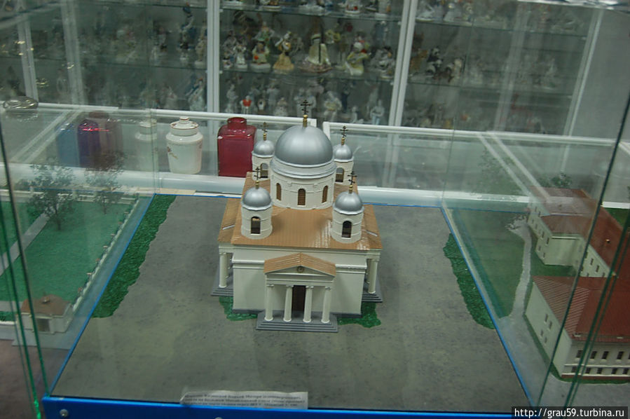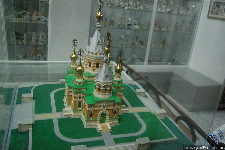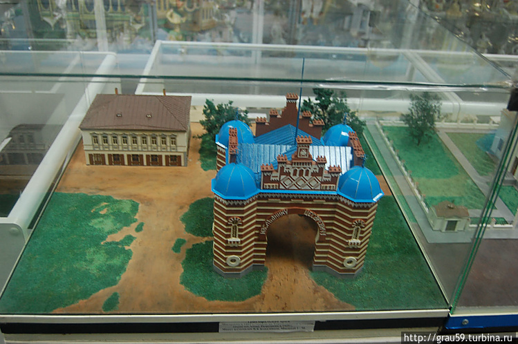 Красивы макеты храмов ,расположенные под стеклом в середине комнаты.