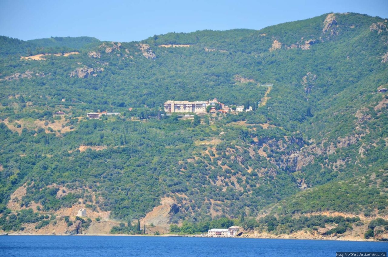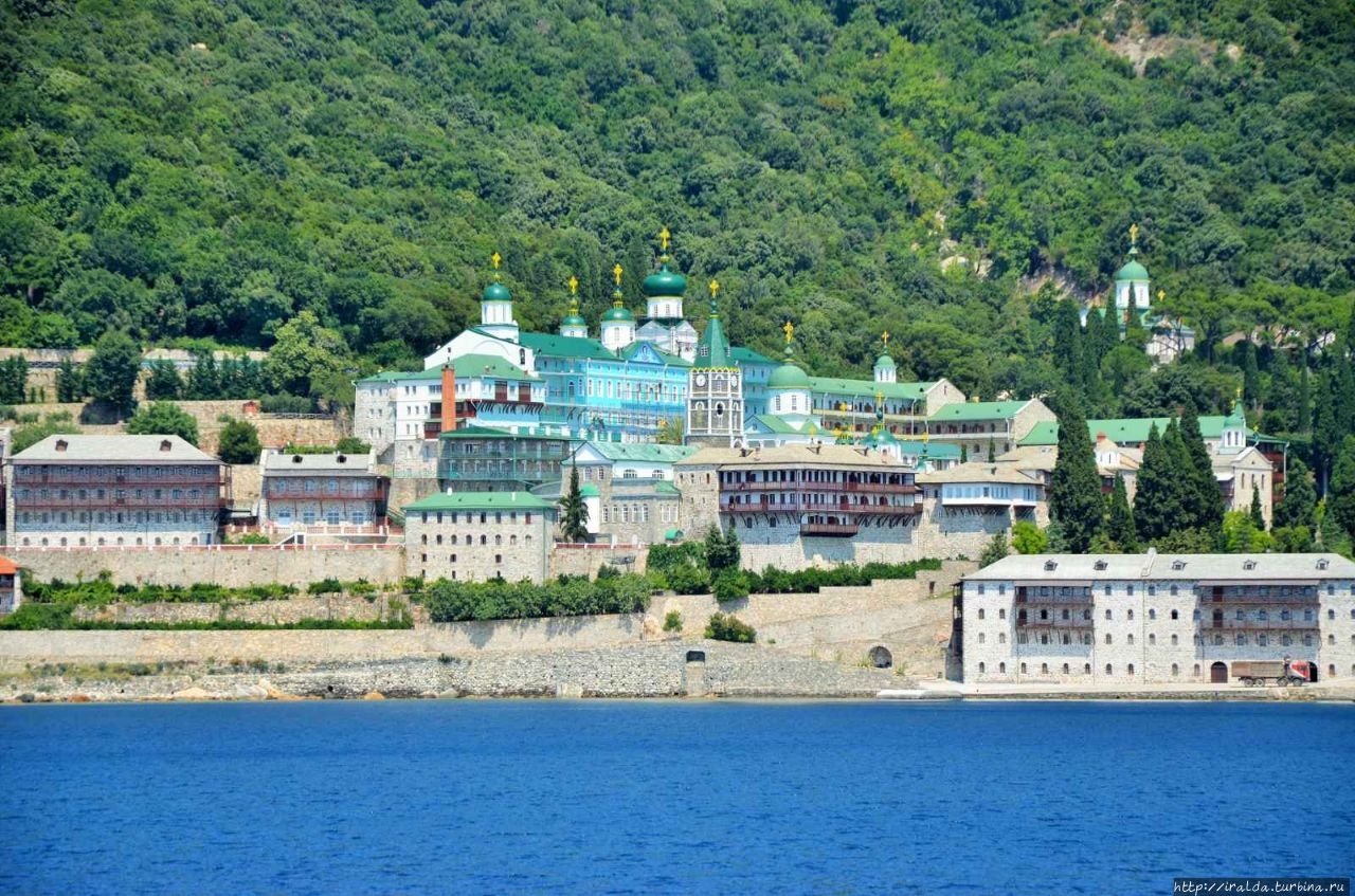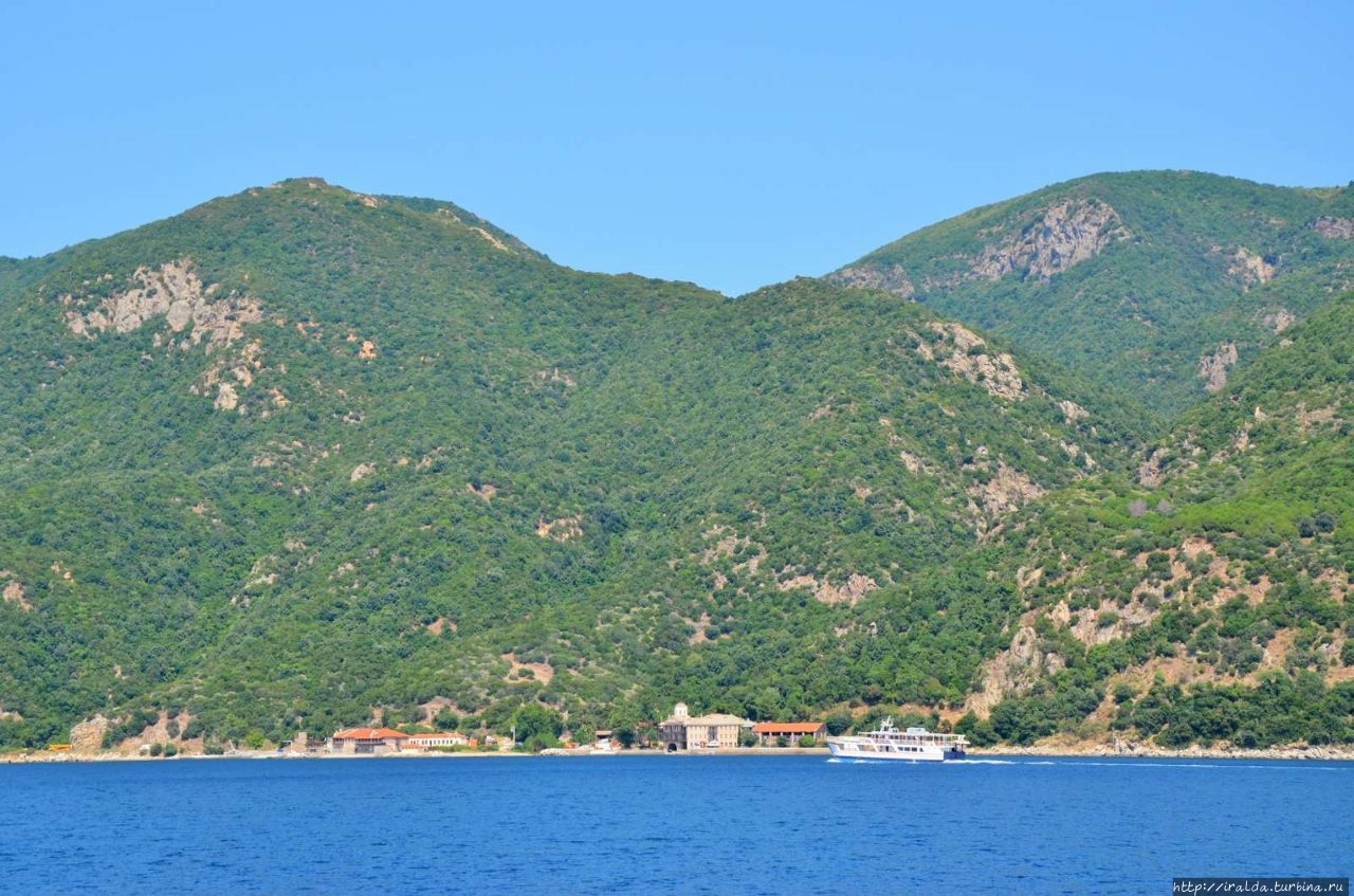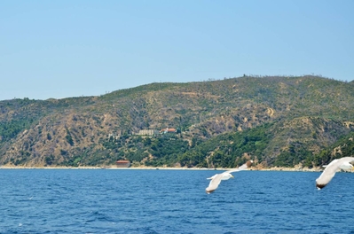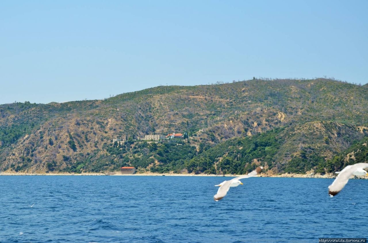 На протяжении всей морской прогулки нашими попутчиками и источником детской радости были ненасытные, отважные и проворливые чайки. Им удавалось и на лету поймать и вырвать прямо из рук лакомство. В таком оживленном общении мы и увидели 7 монастырей и скиты из 20, размещённых на Афоне. Из того что увидела, самый красивый монастырь русской проваславной церкви святого Пантелеимона, также известного как Ро́ссикон.