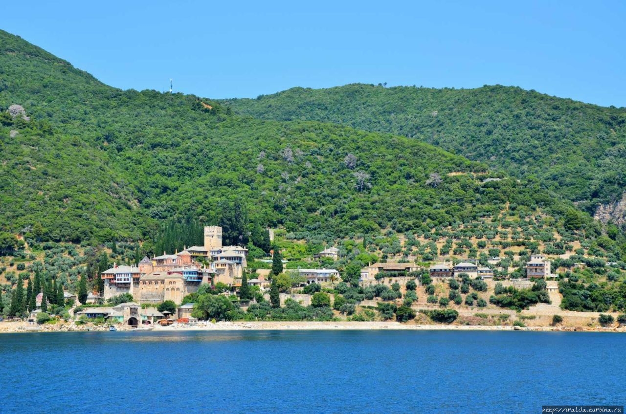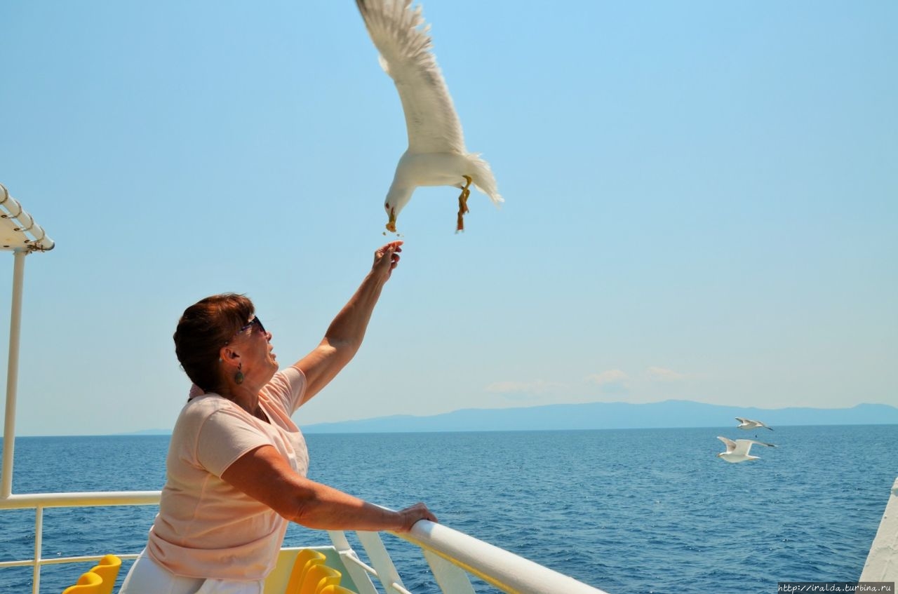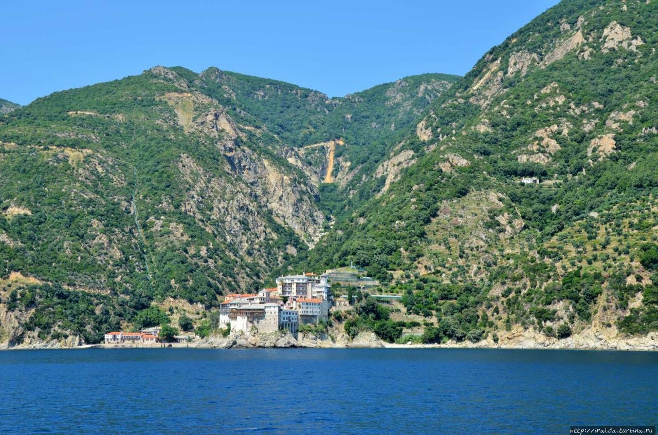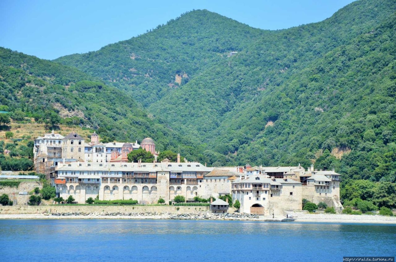 На протяжении всей морской прогулки нашими попутчиками и источником детской радости были ненасытные, отважные и проворливые чайки. Им удавалось и на лету поймать и вырвать прямо из рук лакомство. В таком оживленном общении мы и увидели 7 монастырей и скиты из 20, размещённых на Афоне. Из того что увидела, самый красивый монастырь русской проваславной церкви святого Пантелеимона, также известного как Ро́ссикон.