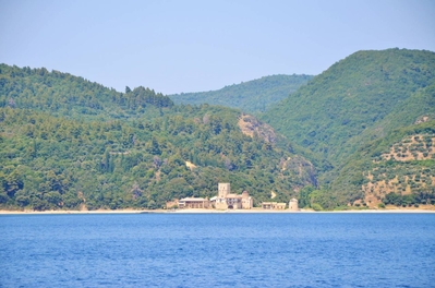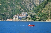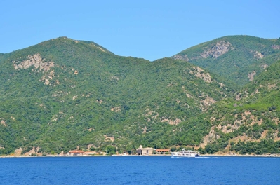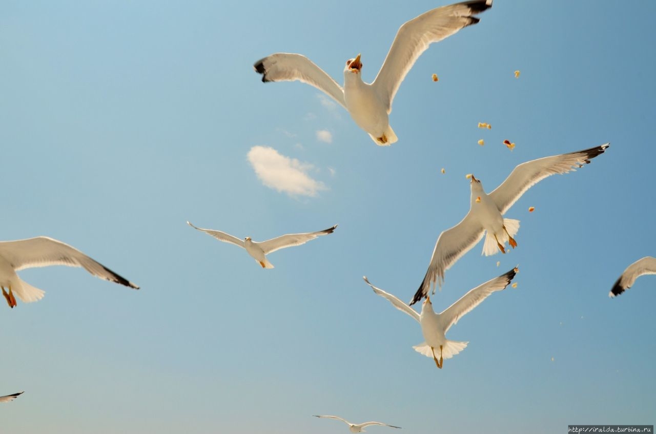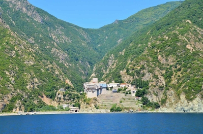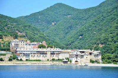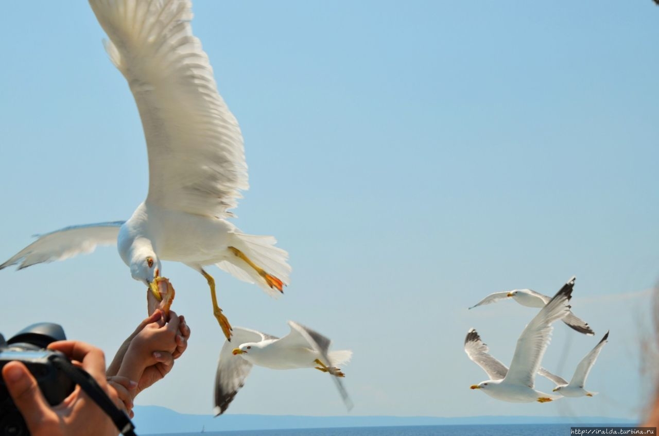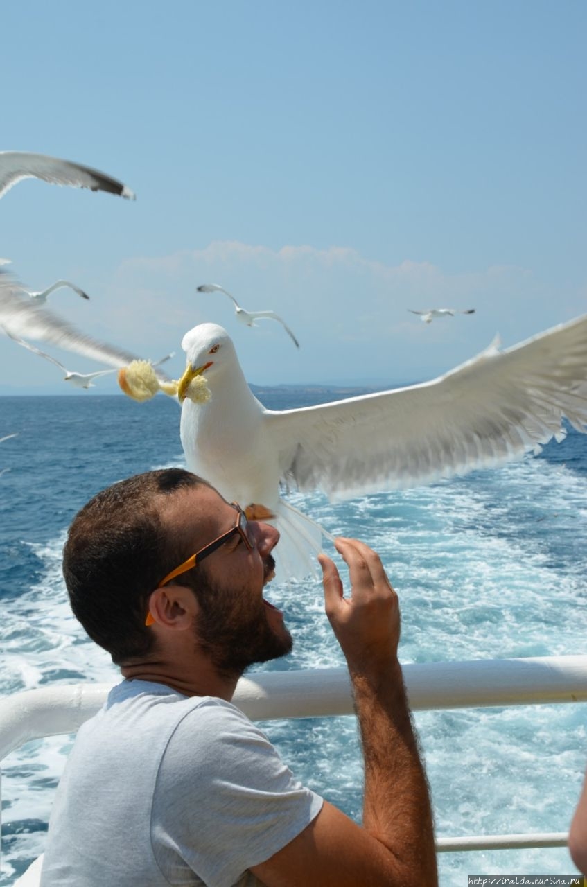На протяжении всей морской прогулки нашими попутчиками и источником детской радости были ненасытные, отважные и проворливые чайки. Им удавалось и на лету поймать и вырвать прямо из рук лакомство. В таком оживленном общении мы и увидели 7 монастырей и скиты из 20, размещённых на Афоне. Из того что увидела, самый красивый монастырь русской проваславной церкви святого Пантелеимона, также известного как Ро́ссикон.