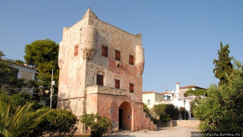 2,5 часовая прогулка заканчивается и мы входим в порт Уранополиса. Первое, что нас встречает на берегу — хорошо сохранившаяся Византийская башня Просфория. Сейчас внутри башни размещается музей с археологическими экспонатами.