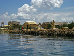 Я вкратце обозначу, для тех кто не совсем в курсе, что за острова Урос такие, но только то, что запомнил со слов гида. Когда испанцы захватили земли вокруг озера Титикака, одно местное племя, дабы избежать пленения и уничтожения, построило плоты из прибрежного тростника и уплыло в озеро. У испанцев здесь, естественно, кораблей не было, да и деревьв, из которых эти корабли можно было бы построить в окрестностях не произростало, а строить из камыша то ли не умели, то ли постенялись, типа не солидно как-то. В общем, никто индейцев в водах озера преследовать не стал, но и на сушу им путь был долго заказан. Так и приспособились они жить на плаву. Из тростника сплели целые острова, лодки. Рыбачили, охотились на дичь водоплавающую, делали вылазки на берег...