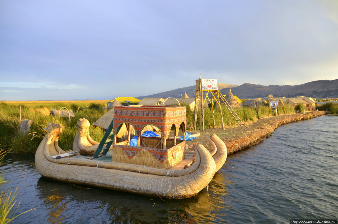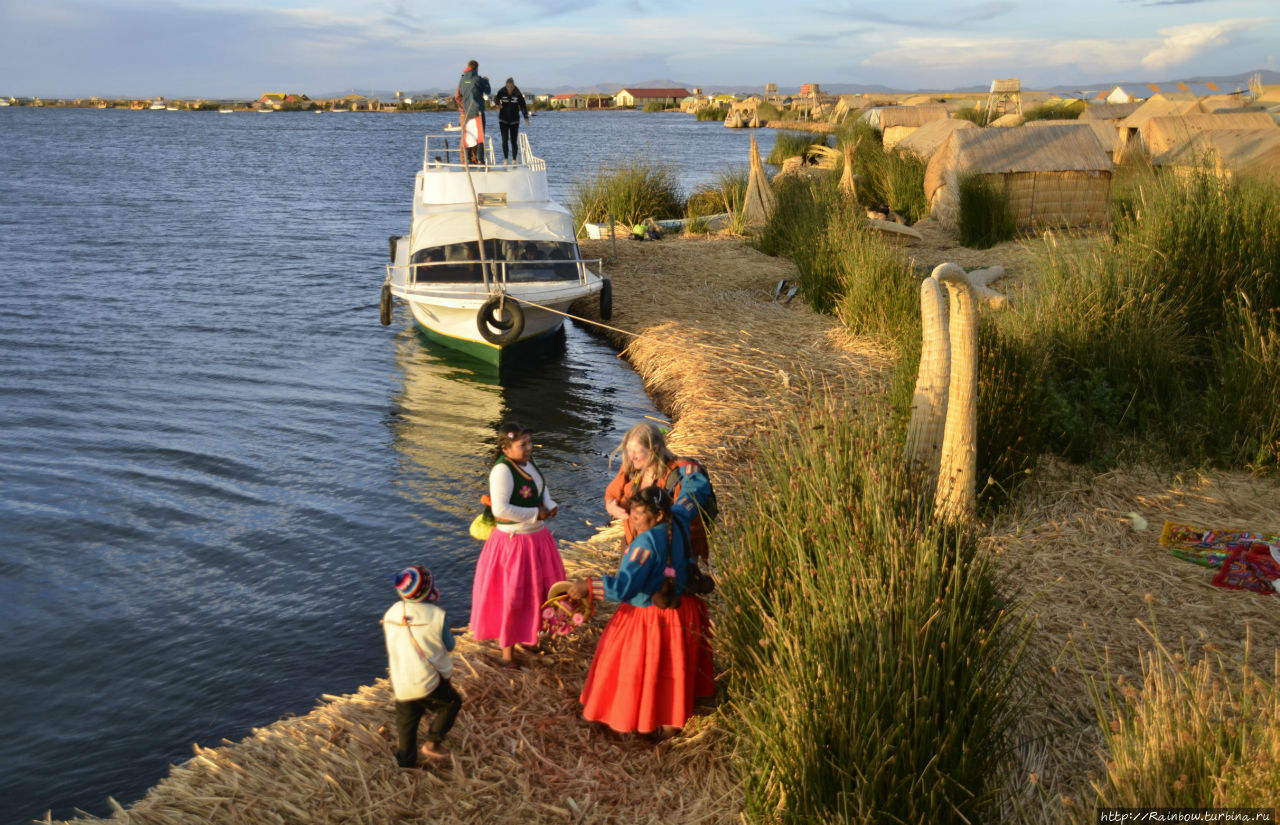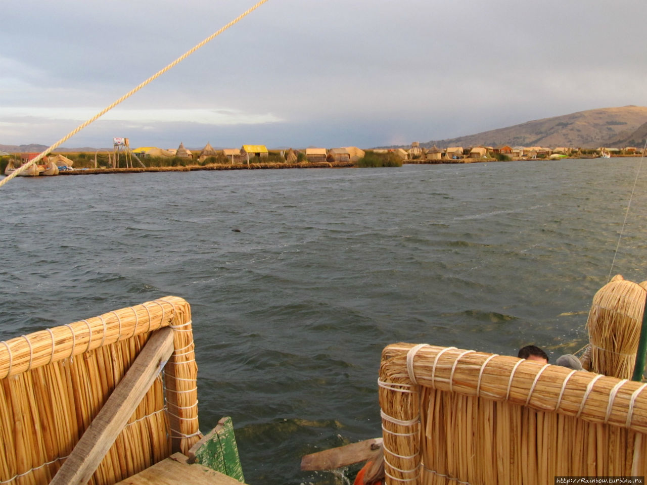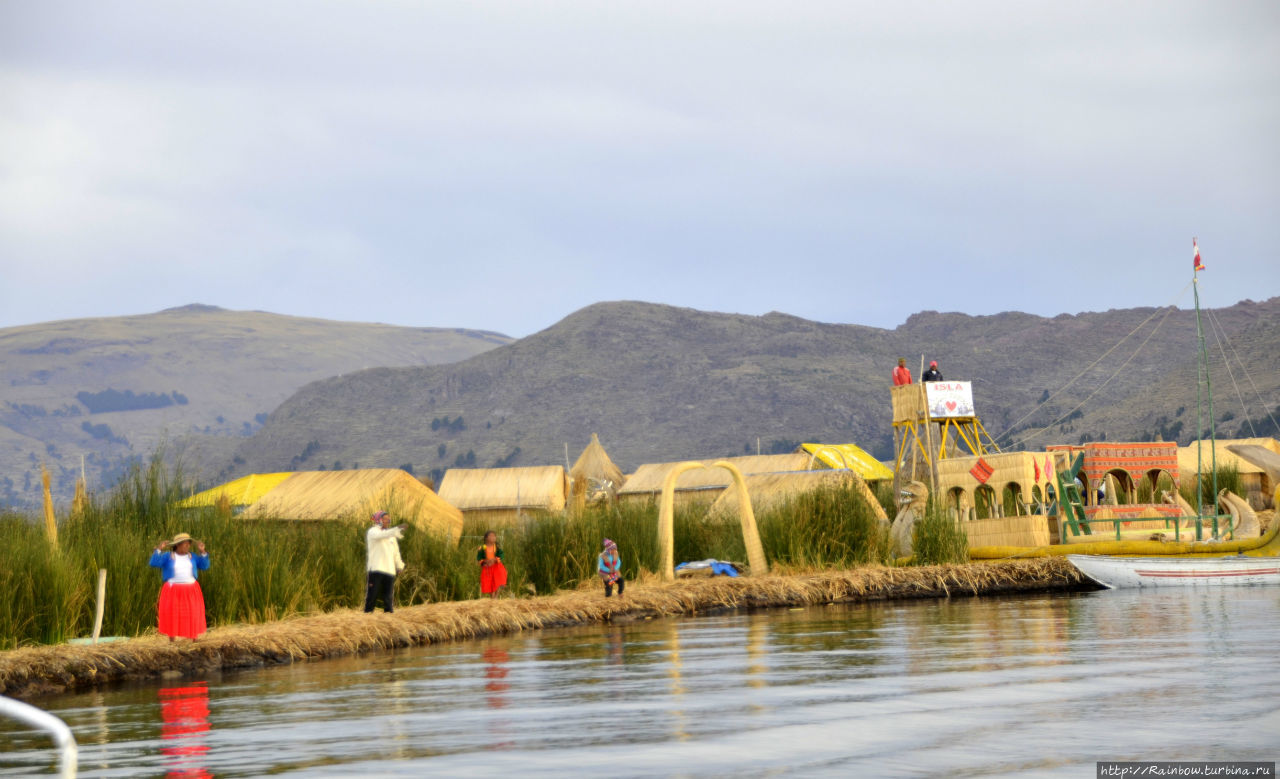 Пока мы плывем, расскажу немного о том, что это за острова и что в них такого уникального. Итак, наша цель — плавучие тростниковые острова Урос. Острова эти созданы людьми из тростника. Они не плавают вольно куда хотят, а могли бы. Просто они привязаны к большому камню и воткнутому в дно бревну. Но при необходимости, если их отвязать, то они поплывут. Но не только это удивительно. Острова эти обитаемые и там живет индейское племя урос.
