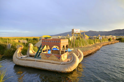 Правда, правда, здесь готовят кофе и кое-какие незамысловатые закуски для туристов, продают напитки, стоят столики. Здесь же есть и маленькая лавка с сувенирами. Жизнь меняется для всех, и для урос тоже. Вот вам и источник их доходов — туризм.