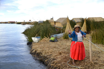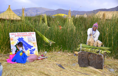 Все выходим на остров. Ходить можно, но ощущения необычные, кругом один тростник и он немного вибрирует. Нас быстренько собирают в круг и наш гид вместе еще с одним, который назвался "президентом острова" начинают рассказ.