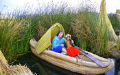 И вот, с того урока прошло уже более тридцати лет, и мы сегодня едем на озеро Титикака. Впрочем, мы на нем, вернее на его боливийской стороне, уже были вчера. Знаменитое озеро поделили Перу и Боливия. На боливийской стороне расположены легендарные острова Солнца и Луны, священные для инков. По легенде, где-то в тех местах инки утопили свои золотые сокровища, что бы они не достались в руки захватчикам. Вот там-то мы и были вчера. Но и на перуанской стороне есть что посмотреть. Прежде всего здесь находятся всемирно известные уникальные плавучие тростниковые острова Урос.