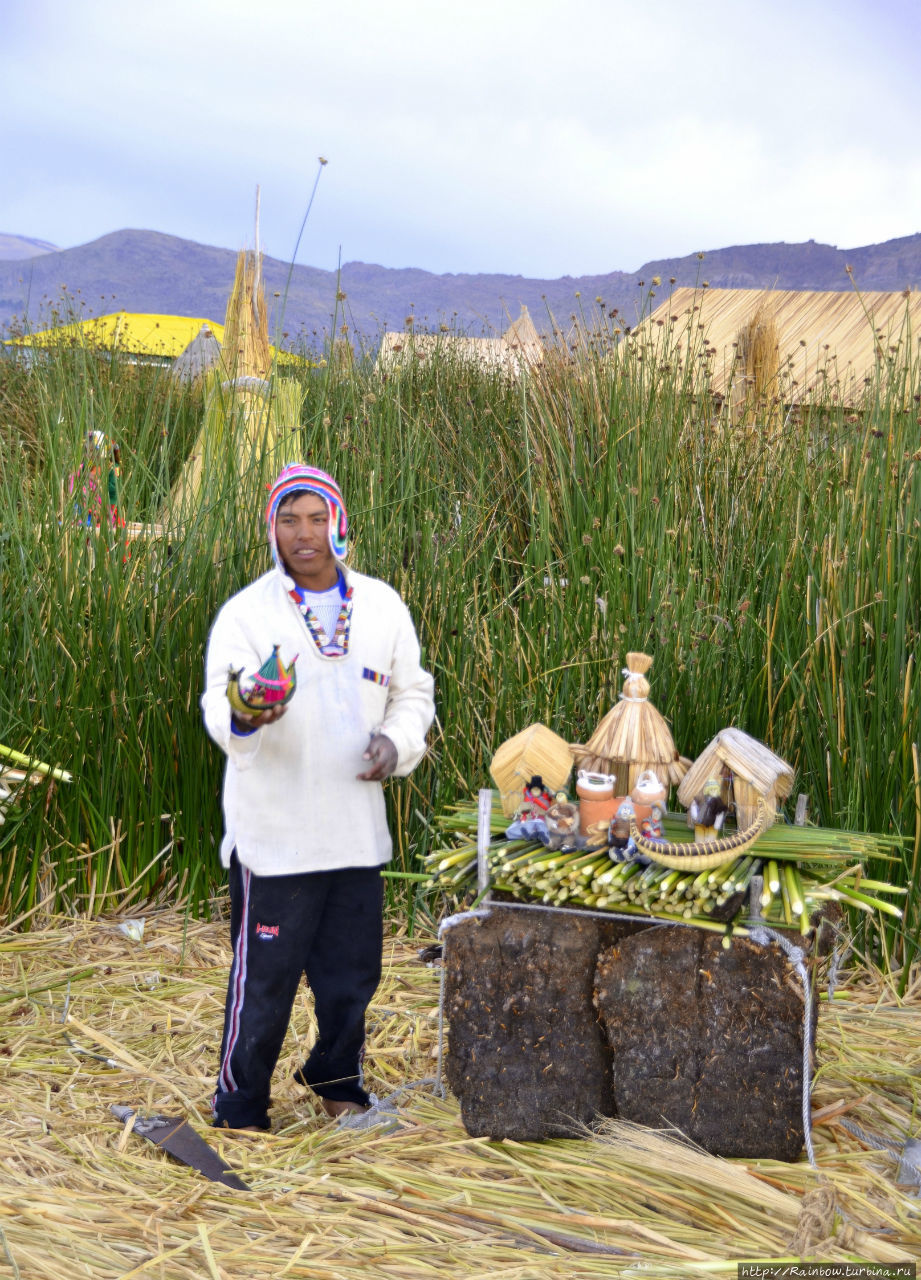 Президент-ли он на самом деле, я не знаю, но то, что он здесь главный, это очевидно. Вот, смотрите, как строится остров. На первоначальный слой земли, на котором растет тростник, накладывается несколько новых слоев из собранного и высушенного тростника, а сверху ставятся дома из того же самого тростника.
