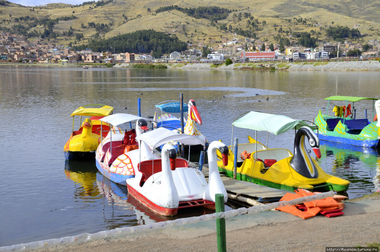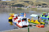 Дневное время мы провели в городе Пуно, где неожиданно попали на фестиваль танца. А послеобеденное и вечернее время посвятим островам. А вот и причал. На чем поплывем, на этих расписных?