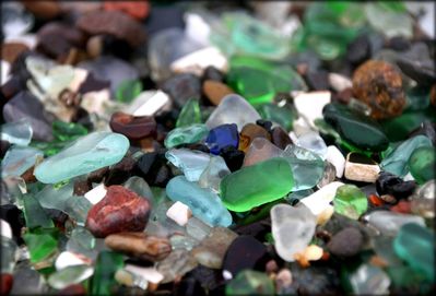 Уникальность бухты, в том, что она усыпана разноцветными кусочками битого стекла (вперемешку с песком и галькой). Края всех стеклянных камушков гладкие, по ним спокойно можно ходить босиком.