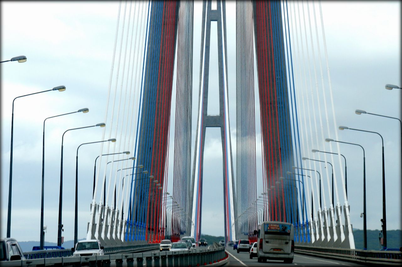 Затем мы отправились на остров Русский. Посмотреть его толком не получилось (оставил на следующий раз). Зато проехались по красивейшему "Русскому мосту", который теперь красуется на купюре 2000 рублей.