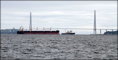После того, как я проехался по двум мостам на автомобиле мне захотелось под ними проплыть. Для этого есть замечательная часовая прогулка на кораблике. Она так и называется "Мосты Владивостока".