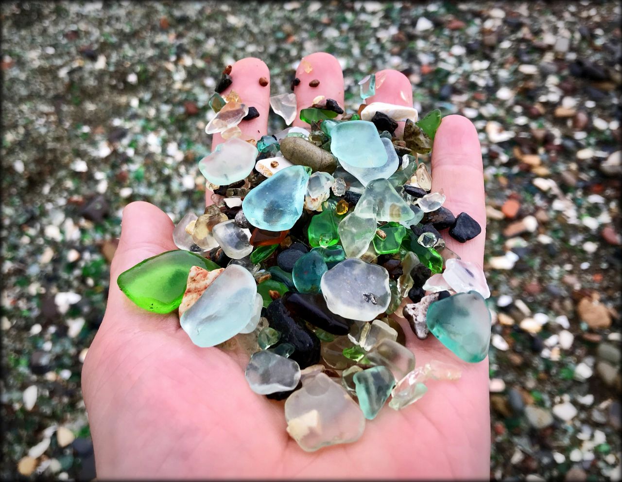 Хочу предупредить, что не надо брать с пляжа стекляшки, они красиво смотрятся только здесь, без воды они выглядят исцарапанными и тусклыми. Лучше просто сделайте фото на память.