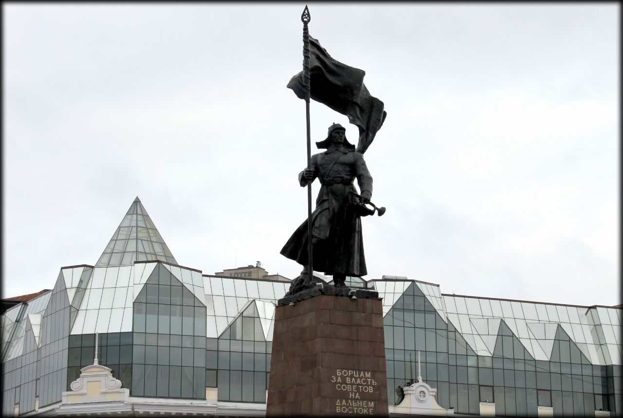 Памятник генерал-губернатору Восточной Сибири графу Н.Н. Муравьёву-Амурскому. Это именно он основал Хабаровск и Владивосток. Теперь этот человек заслуженно изображён на самой крупной нашей купюре 5000 рублей.
