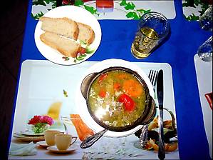 Кормят вкусно и сытно. Мы заказали шурпу и плов — плов я не смогла доесть до конца: уж очень густая и жирная была шурпа. Точно такая, какой должна быть! Плов тоже неплох, но случалось мне пробовать и лучше.