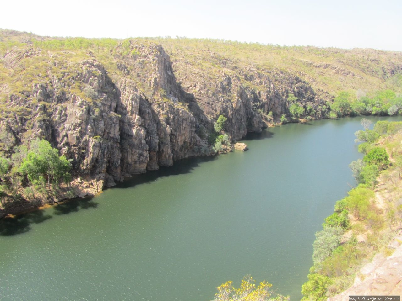 Итак, что касается места, куда мы прибыли. Река Кэтрин берет свое начало в парке Какаду, пробиваясь через песчаниковые скалы, образует 13 небольших каньонов-ущелий высотой 100 метров над руслом реки. Самое большое из них — Кэтрин (Katherine Gorge), к которому проложено два маршрута – понизу и поверху, также можно прокатиться по реке на катере или каноэ.
