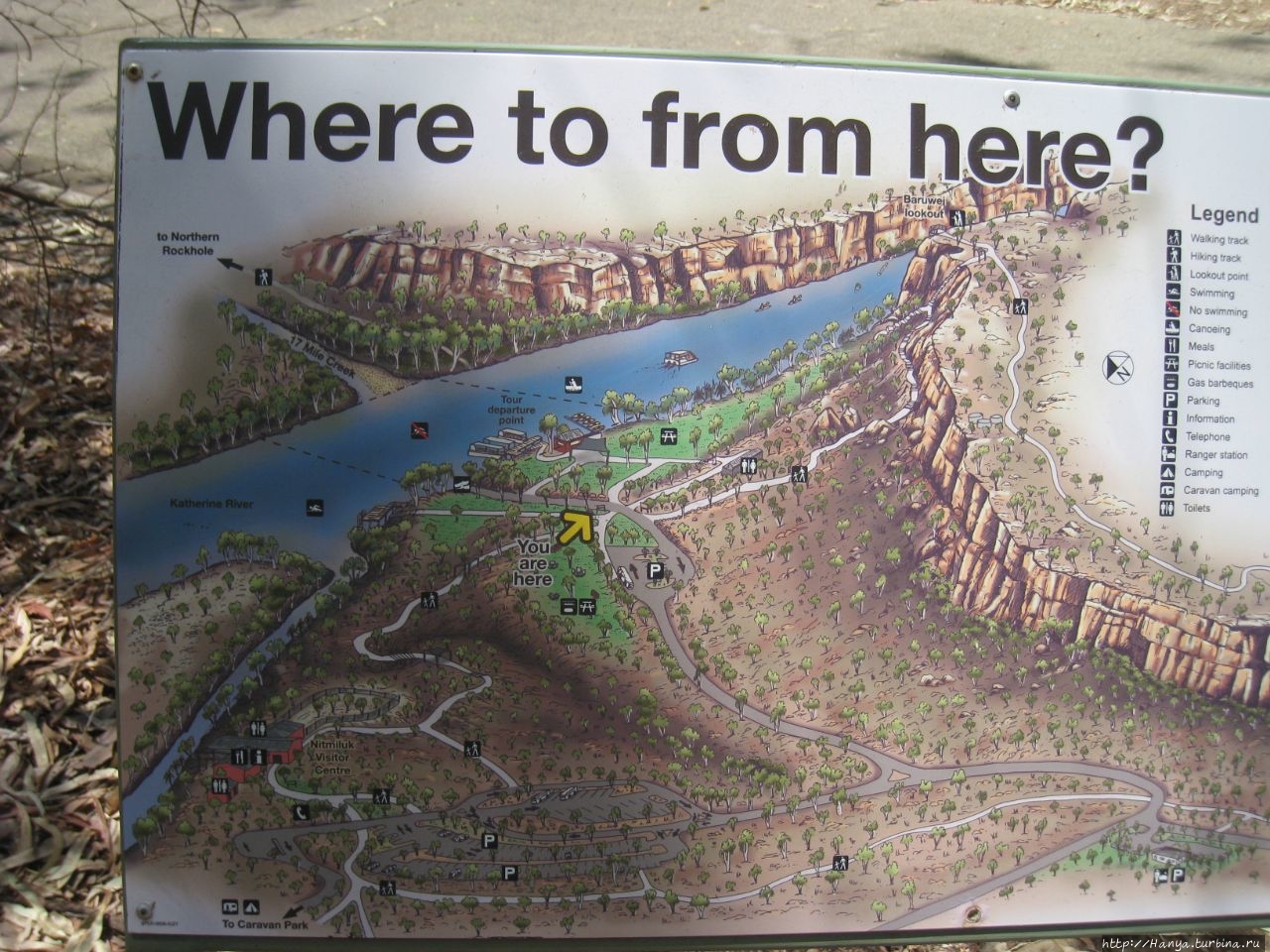 Наконец, мы прибываем к Nitmiluk visitor center (Центр посетителей Национального парка Нитмилук), откуда начинается сеть треков с подъемами на скалистый откос.
