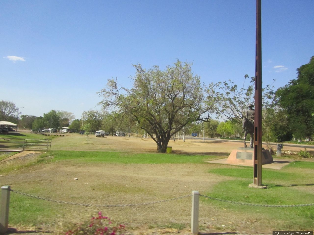 Покидая около трех часов эти места в районе города Кэтрин, мы прощаемся с Аутбэком, этим крайним пределом Северной территории. Мы снова едем по Стюарт хайвэю, и на пересечении с Чемберс Драйв в городе Кэтрин видим за окном конную скульптуру, как говорит Росс, иконическое изображение скотовода и лошади, внесших неоценимый вклад сельских и региональных общин в национальную идентичность Австралии. Заслуги бушменов были отражены в этой скульптуре, а моделью для нее послужил реально существовавший человек по имени Сабу Питер Синг. В своем лице он олицетворял различные расы и культуры, потому что его матерью была аборигенка, а отцом — китаец. Он был уже с семи годов верхом на лошади, но вот погиб Сабу трагически в автокатастрофе в 1993 году.