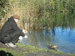 К нашему лагерю подплыли утки в составе двух бойцов. Тактическими ухищрениями они выманили у нас половину лаваша. Людей, как опасность, они ставили на уровень мокрой вафли и подходили к нам вплотную. Даже наши соседи по лагерю – семейная пара, ночевавшая в машине, и на утро обнаружившая на запотевших окнах автомобиля отпечатки ладоней a’la «Титаник», подоспела покормить этих интервентов. Только винтовка тихо скулила в чехле.