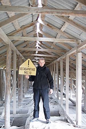 Глаза увидели старые, кирпичные печи, а тело побродило между ними. Саня предпринял попытку к восхождению на водонапорную башню, но своевременное попукивание организма на шаткой лестнице предупредило его об опасности, и он образумился. Но дальше он (организм) всё же был вовлечён в авантюрное посещение цеха по обработке извести. Знак «Негабаритное место» ни о чём нам не сказал, кроме того, что с ним выйдет кадр на аватарку.