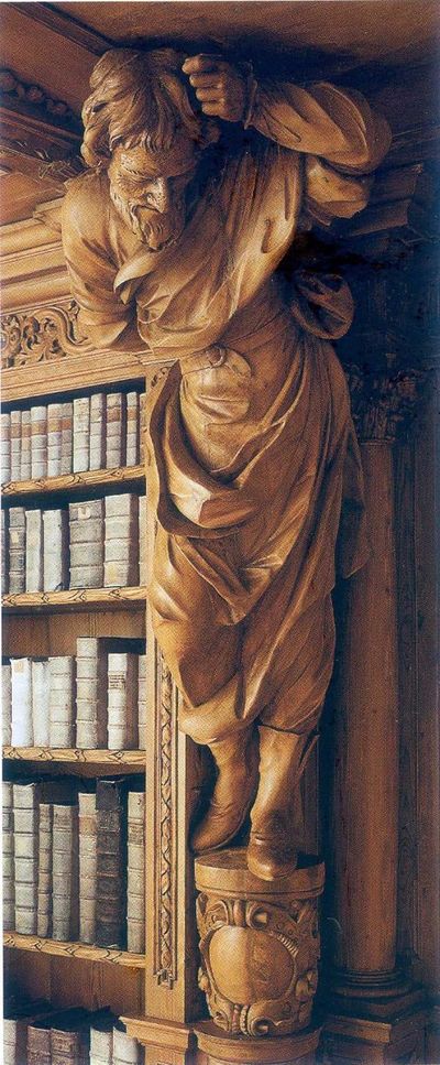 Как раз, когда его популярность была в самом расцвете, в конце XVII в., библиотека и весь монастырь в Вальдзассене, отстраивались заново в барочном стиле. Тогда-то, при внутреннем оформлении библиотечного зала образы шутов как символы человеческих пороков и получили новую жизнь.