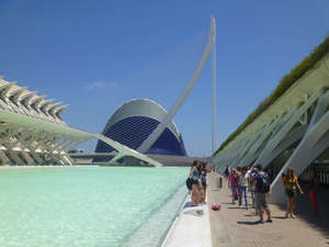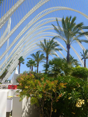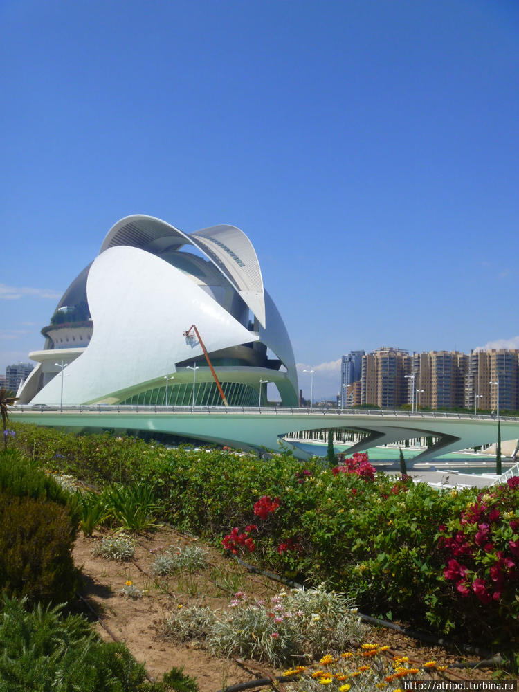 Удивляться там есть чему, но чтобы фотоматериал получился по-настоящему впечатляющим, необходимо, чтобы сразу несколько факторов сыграли на все сто! А именно: погодные условия (5+), настроение автора (5+), наличие времени, чтобы все ухтышки неспеша обойти и выбрать наиболее удачный ракурс (4), наличие фотокамеры, выпуска не мохнатого года (5)Так вот, несмотря на извечную беготню в туристических скоропостижных экскурсиях в поисках всего сразу, да еще при почти полном отсутствии времени, мне удалось ухватить"дух" Калатравы, его настроение что-ли Ведь только при таком одуряющем солнце, безоблачном небе и стабильном финансировании проекта может получиться что-то подобное!Калатрава, уроженец местных апельсиновых рощ,окаца,уже давно живет себе припеваючи в Женеве, но любовь к своей земле выразил вот таким чудесным белоснежным комплексом Вот оно — слияние гениального замысла, инженерной прозорливости, финансовых потоков и туристического расчета! Смотрите и учитесь.
