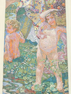 Вокзал — прекрасное здание в стиле модерн — испанский модерн (!) щедро украшено керамическими апельсинами и цветами. Внутренние помещения тоже разукрашены мозаиками и керамическими плитками в необыкновенно яркой, сочной гамме. Не вокзал, а цветущий сад! Изумительные панно на фасаде с солнечными бликами — просто ранний Бродский или Семирадский. Прозрачные, очень светлые и в то же время яркие мозаики, по-моему, замечательно передают местный колорит.