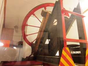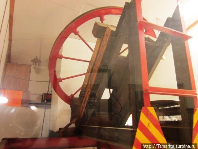 В лифтёрной огромные колёса, поворачиваясь, тянули металлический трос, приводя в движение кабины.