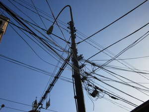 Хитроумно сплетённые провода опутали город, совсем его не украшая.